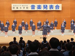 子どもたちは,学級や学年で音楽の時間や朝の会等で練習を積み重ねてきました。本番では,全校児童,保護者,職員が見つめる中,聴く人に感動を届けようと学級や学年の仲間と心を一つにして合唱や演奏を披露する姿が見られました。