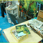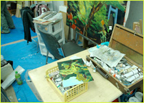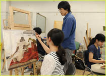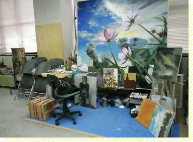 絵画研究室では桶田洋明先生指導の元、油彩、水彩、アクリル、テンペラ、日本画、フレスコなど様々な画材・画法を取り入れながら日々制作に努めています。先輩方からアドバイスを頂いたり、友人同士で批評しあうことで常に新たな発見があり、自分自身の成長に大きく繋がっています。担当教員:桶田 洋明