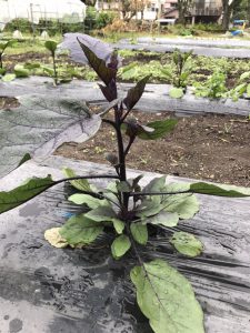 それから、ナスに半身萎凋病が出てきました。これは土壌中の糸状菌(カビの一種)が原因で、植える前に土壌消毒を行うか耐病性の接ぎ木苗を用いるなどの予防策が有効で、発生すると駆除するのに難しい病気です。