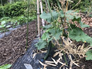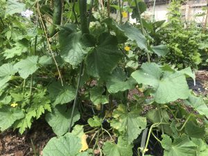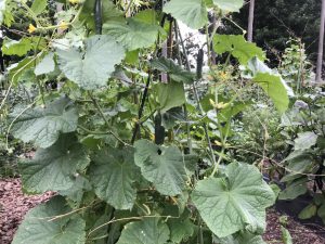 巨大化しつつあるキュウリがいくつかあります。小さいキュウリでも、雨が降ると1日で驚くほど成長します。
