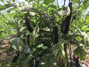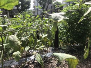 ナスは収穫できるものがあります。放っておくと種ができ硬くなりやすいので、早めに収穫されてください。