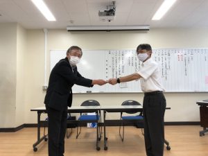 本日、公益財団法人 日本教育公務員弘済会から「令和2年度実践研究活動激励校」として助成金をいただきました。激励校として推薦していただいた皆様に感謝し、この度いただいた助成金は、今進めている研究を更に充実させ、多くの方々のお役に立てることができるように、有効に活用させていただきたいと思います。下の写真は鹿児島支部より3名の方が来校され、贈呈式が行われた様子です。