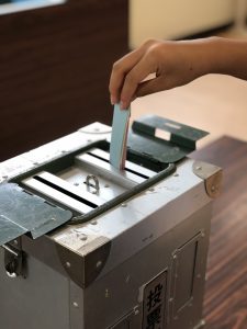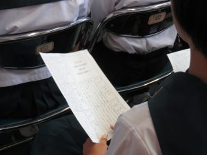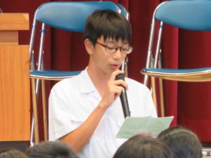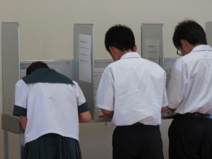 本日5・6校時に体育館で生徒会立会演説会が行われ、立候補者は堂々と附属中のあるべき未来についてあつくに語ってくれました。今回立候補した生徒の誰が当選しても、明るい未来を創造してくれると確信した演説会でした。そして、そこにはその演説を真摯に聴く生徒の姿があり、これからの附属中が楽しみになりました。演説会が終わったあとには、選挙管理委員長からの投票上の注意等があり、今年度から本日中に投票、開票作業が行われました。