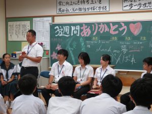 本日、第4回G・Tが行われました。これまで、前期・英語教科連絡員が中心となって、様々な取組を行ってくれました。本日は、英語を用いて「鹿児島の魅力を説明しよう」というものでした。1つのG・Tを行うためには、それに向けた台本の準備、そして入念のリハーサルが必要です。見えないところの努力が、附属中のこれまでのG・Tを支えてくれました。後期は、英語教科連絡員が変わります。また、新たな視点での活動を期待しています。