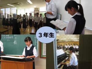 文化祭に向けて,3年生のクラス合唱、2年生の180人合唱、1年生のアジア・フレンドシップ・プロジェクト(通称AFP)も少しずつではありますが形になってきました。日頃の学習環境とは異なり、教育実習生が見守ってくれる中で一生懸命に自分の役割を果たそうとして努力している姿が多く見られます。文化祭まで、あと12日です。文化祭スローガンを忘れず、学年・学級という横の糸を紡いでほしいと思います。