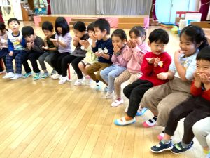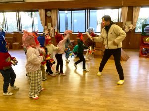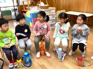 みんな元気に登園したかと思うと,「あけましておめでとうございます!」🎍とあいさつから始まり,冬休みの楽しかったことを笑顔で話していました。