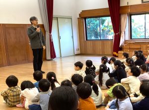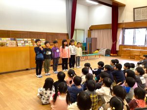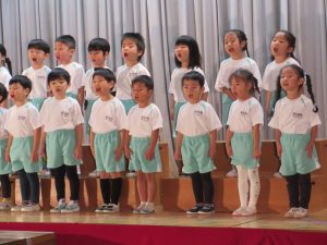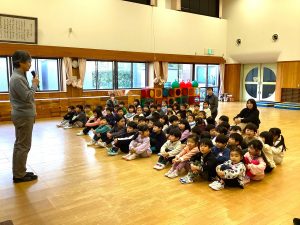 冬休み明け集会では,うみ組さんの代表児が冬休みに楽しかったことや幼稚園で楽しみにしていることを発表してくれました。
