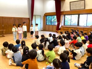 今年も,忍者ごっこ🥷や戦いごっこ⚔️などの遊びから劇をつくったり,洋服づくりが好きな子がファッションショー👗をしたり,自分たちで発表する場所をつくったりと子どもたちのアイディアが満載のおたのしみ会となりました🌈