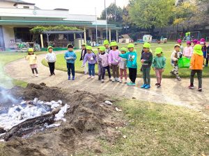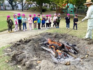 朝から「たき火のにおいがする!」「早くお芋食べたい。」など焼き芋を楽しみしている様子の子どもたち。