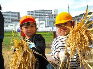 11月19日(水),年長のうみ組が農学部へ脱穀に行きました🌾🌾