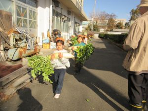 9月に植えた,ジャガイモとダイコンを収穫しに年長児と年少児が,お出かけしました。