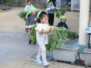 自分で抜いただいこんを大事そうに笑顔で持ってきた子どもたちは,頼もしくみえました。