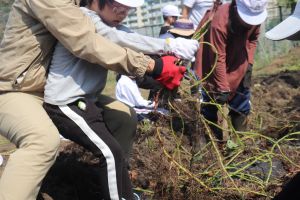 学部農園には,今年の猛暑を乗り越えて,たくさんのさつま芋が実っていました。