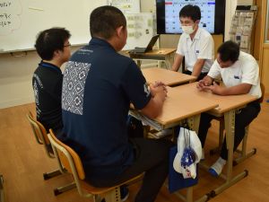| 四者面談練習の様子 | 乾電池の仕分けに取り組む様子 |