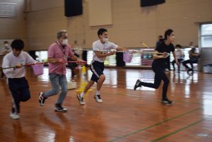 6月5日(日)は日曜参観日でした。体育の授業は,「親子de運動会!」と銘打って,親子触れ合い活動を兼ねて実施しました。アナウンスや開会宣言,準備運動,成績発表などの係は生徒たちが行い,高等部生らしい立派な姿が見られました。本当の運動会さながらの入場行進や開会式を行い,親子で気持ちを高めた後は,5月に実施した運動会で生徒たちが披露したダンスを親子で踊ったり,運動会では実施できなかった親子競技や「台風の目」をモチーフにした競技に取り組んだりして,大変盛り上がりました。時には真剣勝負,時には和やかな雰囲気の中,親子で汗を流しながら思い切り運動を楽しむことができました。御参加くださった保護者の皆様,ありがとうございました。