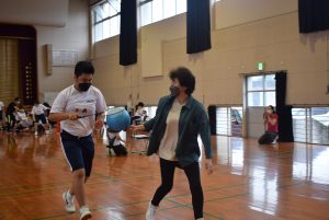 6月5日(日)は日曜参観日でした。体育の授業は,「親子de運動会!」と銘打って,親子触れ合い活動を兼ねて実施しました。アナウンスや開会宣言,準備運動,成績発表などの係は生徒たちが行い,高等部生らしい立派な姿が見られました。本当の運動会さながらの入場行進や開会式を行い,親子で気持ちを高めた後は,5月に実施した運動会で生徒たちが披露したダンスを親子で踊ったり,運動会では実施できなかった親子競技や「台風の目」をモチーフにした競技に取り組んだりして,大変盛り上がりました。時には真剣勝負,時には和やかな雰囲気の中,親子で汗を流しながら思い切り運動を楽しむことができました。御参加くださった保護者の皆様,ありがとうございました。