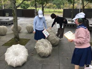 10月3日,湧水町にある霧島アートの森で芸術鑑賞教室Ⅰを行いました。霧島アートの森は,屋外に展示された作品を鑑賞することができる美術館ですが,この日の天気は曇り。作品鑑賞に適した気候の中での活動となりました。生徒たちは,事前に決めた数点の作品を中心に鑑賞しました。実際の作品を間近で見たり,触れて材質や感触を確かめたりしながら,感じたことや気付いたことを友達や教師と共有し,ワークシートにまとめていました。作品鑑賞後の感想発表では,「ホイップクリームみたい。」や「作品を見る角度で形が変わることに気付いた。」など,生徒一人一人の感性で捉えた作品の印象を述べていました。最後に,霧島アートの森の学芸員の方から講評をいただき,「みなさんの自由な感性や発想が素晴らしい。今回は非日常での鑑賞だったが,日常の中の芸術をぜひ見付けてほしい。」というメッセージをいただきました。自然の中で見え方や感じ方が変化する芸術作品の鑑賞を通して,芸術に対する感性が磨かれたようです。芸術作品の見方や感じ方を広げたり深めたりすることができ,充実した1日になりました。