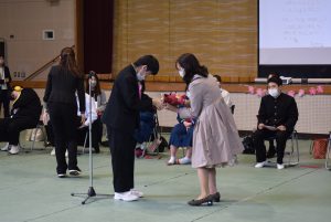 3月7日に「みんなで卒業を祝う会」を行いました。祝う会では,生徒みんなで一緒にダンスをした後,メッセージが書かれた色紙を1,2年生が卒業生にプレゼントしました。卒業生から保護者に向けたメッセージでは,一人一人が小学生のときから高等部3年生までの思い出や感謝の気持ちを伝え,花束をプレゼントしました。生徒たちからのメッセージやプレゼントを受け取った保護者の方からは,これまでの学校生活への思いや成長への喜びなどを伝えていただきました。みんなの思いが伝わる温かい会になりました。