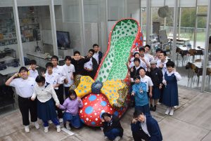霧島アートの森は,大自然の中に数多くの立体作品が展示されている美術館です。当日は霧がかかる中での活動でしたが,生徒たちは実際に作品に触れて,色や形,素材,受けた印象など気付いたことを意見交換しながらじっくり作品を鑑賞することができました。鑑賞後は,作品についての考えを学級でまとめて発表したり,学芸員の方に講評をいただいたりすることで,自分たちの作品の捉え方に自信を深めたり,作家の表現意図などを知ったりすることができ,芸術を味わう素晴らしい一日になりました。