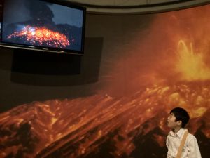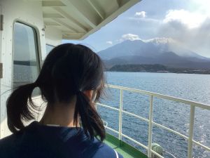 | 桜島フェリーに乗船 | 桜島ビジターセンターにて① | 桜島ビジターセンターにて② |