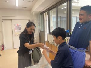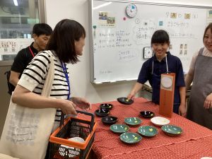 1年生は中学部に入学して初めての作業学習に取り組んでいるのはもちろんですが,2・3年生も4月から新たな作業グループでの学習がスタートしました。新たな班になってから,初めての校内販売会です。生徒たちは,1学期は製品製作に使用する道具や材料の扱い方を学び,慣れると同時に,製品の作り方や自分の担当する仕事の内容も理解し,担当できるよう頑張ってきました。当日の接客や会計も不慣れな部分はありましたが,「おすすめの製品を丁寧に説明してくれた。」,「『いらっしゃいませ』や『ありがとう』を笑顔で言ってくれてうれしかった。」といったお客様の言葉が充実感や達成感につながったようです。1学期の製品製作・販売で学んだことを,2・3学期の学習へとつなげていきます。