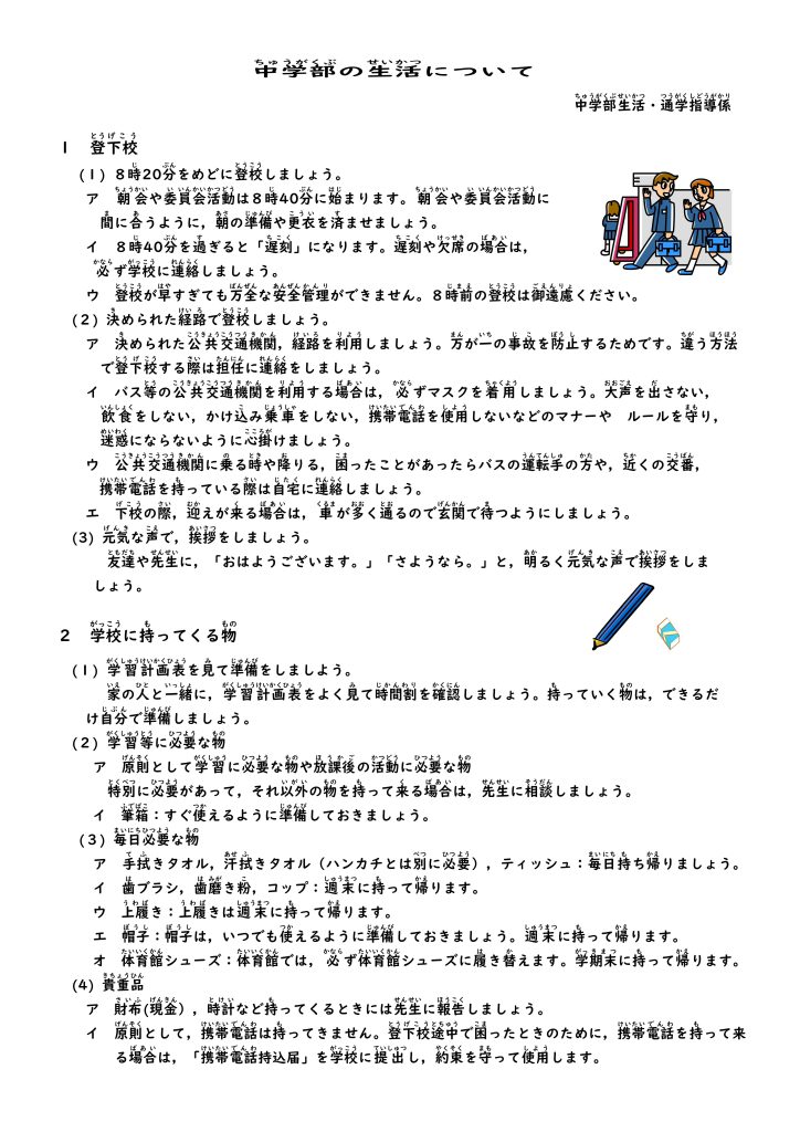 中学部(中学部の生活について)を新設しました。