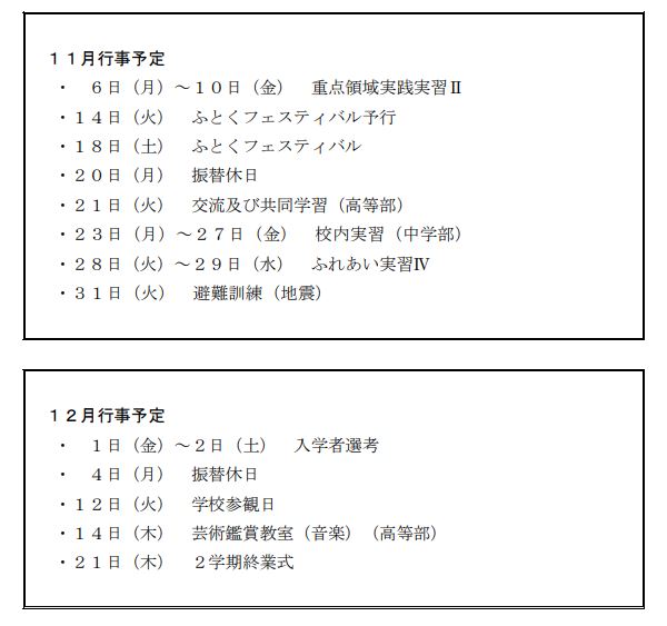 行事予定(9月~12月)を更新しました。