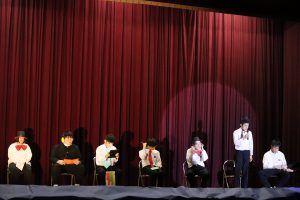 高等部は,自分たちの学校生活の様子を,ドキュメンタリー番組仕立ての演出で発表をしました。これまでの学習でできるようになったことを生かしながら,授業中や休み時間の様子を生き生きと表現することができました。