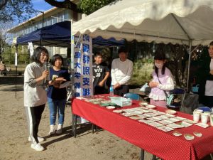 11月30日(日)に,鹿児島市下伊敷1丁目の栄門公園にて,栄門パークバザールが開催されました。本校も,中学部と高等部の生徒が作業学習で作っている製品を出品しました。日曜日でしたが,本校の児童生徒や保護者が訪れたり,交流及び共同学習の相手校である伊敷中学校の生徒が「たくさんの製品を作っているんですね。すごいですね。」とブースをのぞいたりと,充実した1日となりました。写真は,販売の様子と,おすすめの商品をインタビューされたときの様子です。